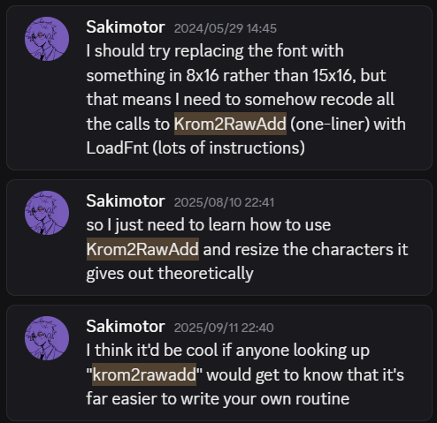 And thus began my obstination with the ridiculously small chunk of code that was calling the Krom2RawAdd function and pulling characters out of the BIOS to put them on screen. My tunnel vision was absolute, I HAD to figure it out and make it work in a way that'd make the English patch possible.