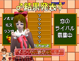 Eventually, I gave the game a try myself, and that's when it dawned upon me: as Taito loved doing it back then, Magical Date features arank system, which is depicted with Stars on the recap screen after clearing each minigame. If you suck at those quizzes, the girl will more likely than not end up heartbroken, and your final game rank will suffer in consequence. Later, thanks to the Strategy Guide, Clair confirmed to me that each girl can give you either the "BOY FRIEND", the "SWEETHEART", or the "KISS" ending, and that those endings depended not only on the player's ability to clear the minigames, but also some specific conditions such as the rank you obtain when the girl quizzes you or how many of the outfits you picked ended up to the girl's liking. There was a clear incentive to make the game "playable" for the EOPs of my kind now!