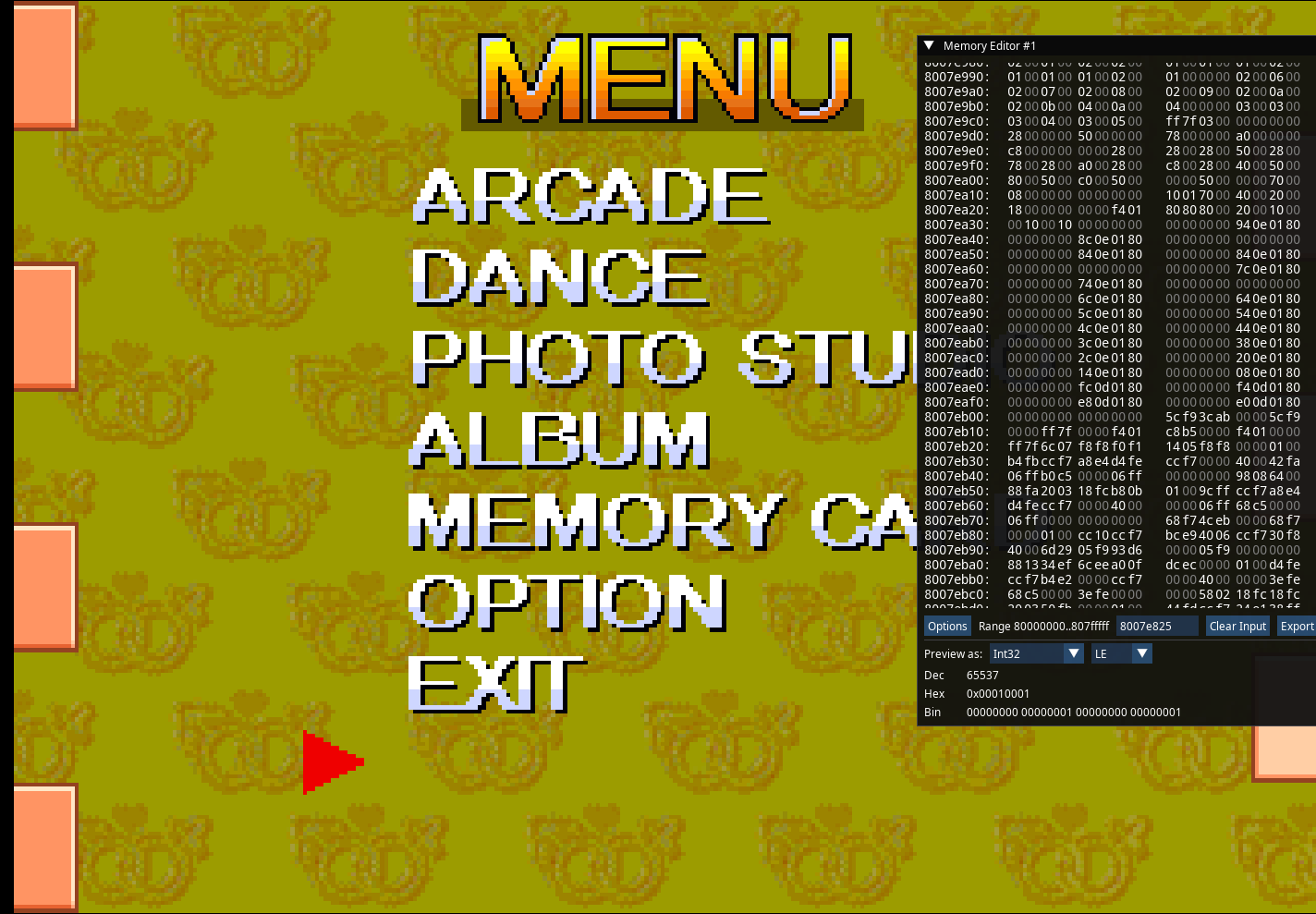 On the day before Clair's special Christmas 2024 release, I had actually stumbled upon a hidden minigame select menu. Indeed, if the byte located at address 0x8007e823 is set to 7, you could then hover an "invisible" option on the main menu, and selecting it will bring you back into attract mode. Next time you'd insert a credit, you'd be sent to the same screen as before, but with a new option: "MINI GAME". We decided to not toggle this byte on by default even if it would be "easy", as that would add more sprite editing work for a hidden feature. Said feature was used to quickly test some minigames' tutorial graphics for the 2024 Demo, then never again.