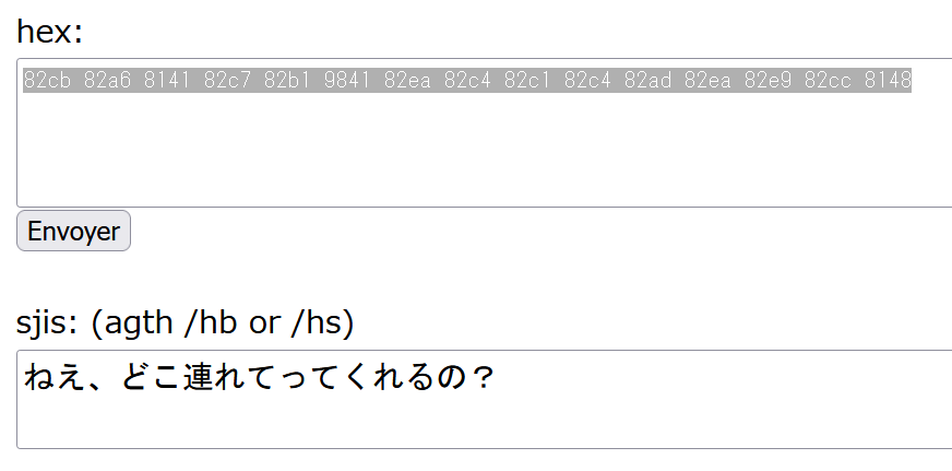 Anyway, this doesn't really answer the question: how did I know? Well, someone made a web-app which could convert hexadecimal code to Shift-JIS,