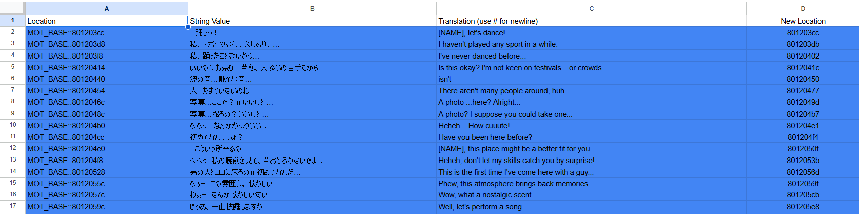 Well, now that English text could be displayed ingame, in a half-width 8x8 format, it's time to edit all of the Japanese with English. We still had to figure out how does the game handle the player's name and honorifics, but that sounded approachable now that we overcame the biggest obstacle. The spreadsheet we had created conveniently stored the game's text locations, so theoretically I would've just had to copy the English where the Japanese text currently was expected to be. Of course, as it turns out, English often takes up more space than Japanese, and even though a single kanji takes up 2 bytes, we would more often than not go beyond the original text's scope. And so now, it was a cat and mouse game: we had to insert text into files, then edit the pointers referring to said text until everything would click together. Sounds easy on paper, in reality this took months and required a lot of testing. Also sometimes it wasn't pointers but arithmetic instructions in assembly :D