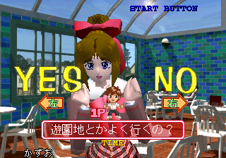 I was familiar with Taito's works from the mid-late 90s such as the Ray series, Darius, Puchi Carat, Arkanoid Returns, Elevator Action Returns, hell I had even exchanged about the obscure Gamera 2000 with Clair before, but Magical Date? I didn't even have an idea of what it could be about! I was asked to watch some footage of the game, and, like it's probably the case for any westoid who'd be made aware of its' existence, I was surprised to see that, while it did indeed have some "dating", the game mostly revolved around clearing minigames on a board (not unlike a WarioWare or a Gun Bullet). The girls seemed quite talkative, always giving little comments about the player's skill level after clearing a minigame, and there seemed to be some sections in-between two minigames where you'd get to speak to the girl directly and answer some questions, pick an outfit for her, or take photos of your (soon to be?) girlfriend with the outfit you had selected before. Each of those breaks had a fair amount of talking, not a lot, but enough to make me wonder about what was said, especially since the player doesn't have the luxury of choosing whenever the text would appear or go away: after all, it's initially an arcade title, you can't keep the other clients waiting on the cabinet forever.
