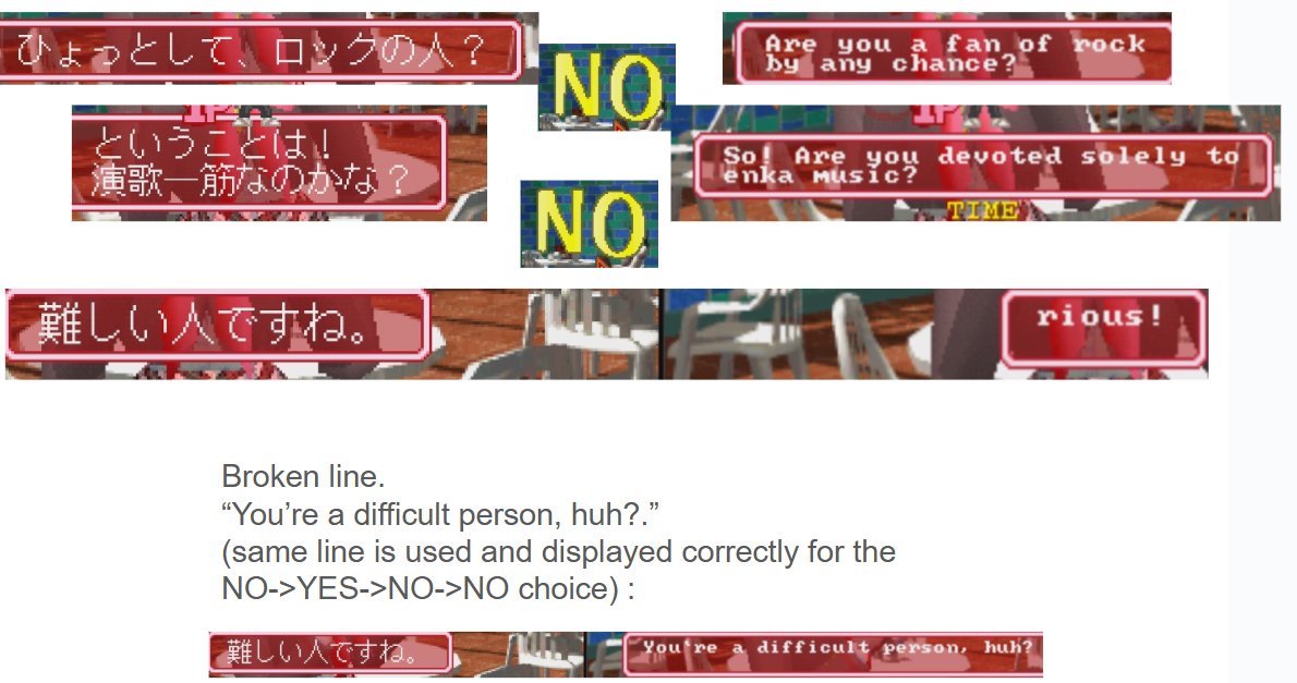 Until a few days before release, a lot of the game's lines were still broken due to unedited pointers