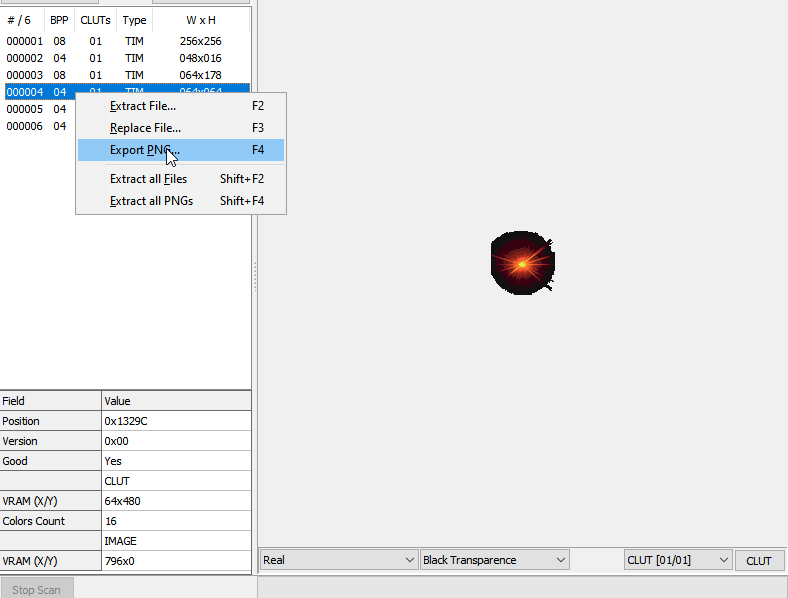 Then, we had ".TIM" files, which we weren't that familiar with before starting to work on the translation, but we'd heard some things about it from Hilltop's videos about PS1 graphics, notably